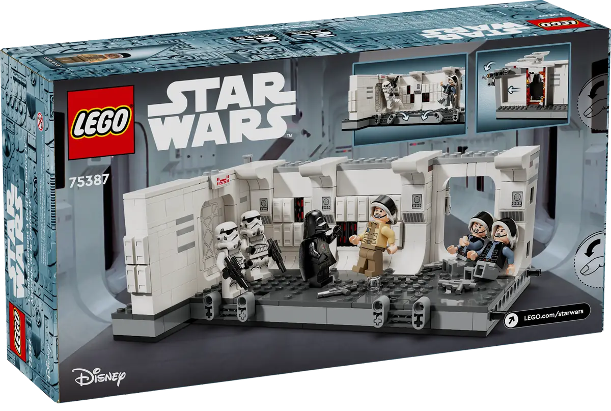 Revive el momento en que Darth Vader y sus soldados de asalto abordan la Tantive IV en Star Wars: Una Nueva Esperanza con este juego de juguetes de construcción (75387) para niños y niñas a partir de 8 años. Cuenta con una detallada recreación delcorredor de la Tantive IV donde los soldados de asalto de Darth Vader se enfrentan a los soldados de la flota rebelde del Capitán Antilles, con palancas para abrir la puerta de una “explosión” y hacer caer a los personajes durante el combate. Los conec tores permiten a los constructores agregar otro set 75387 (a la venta por separado) para ampliar el corredor.